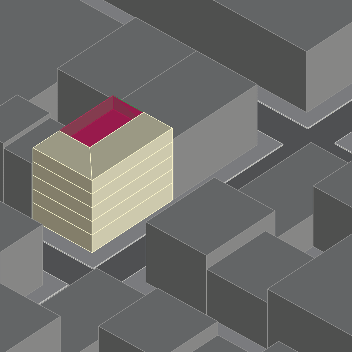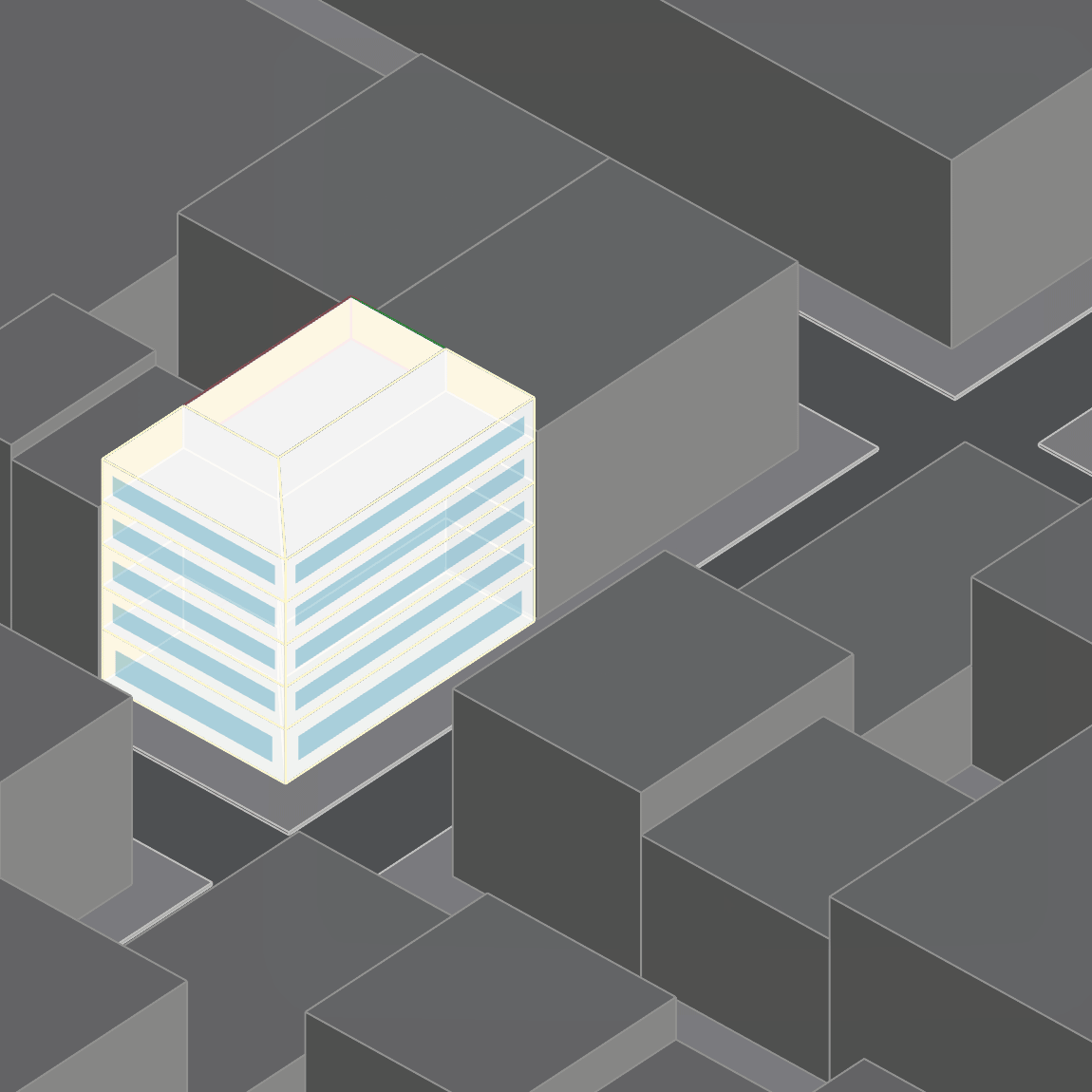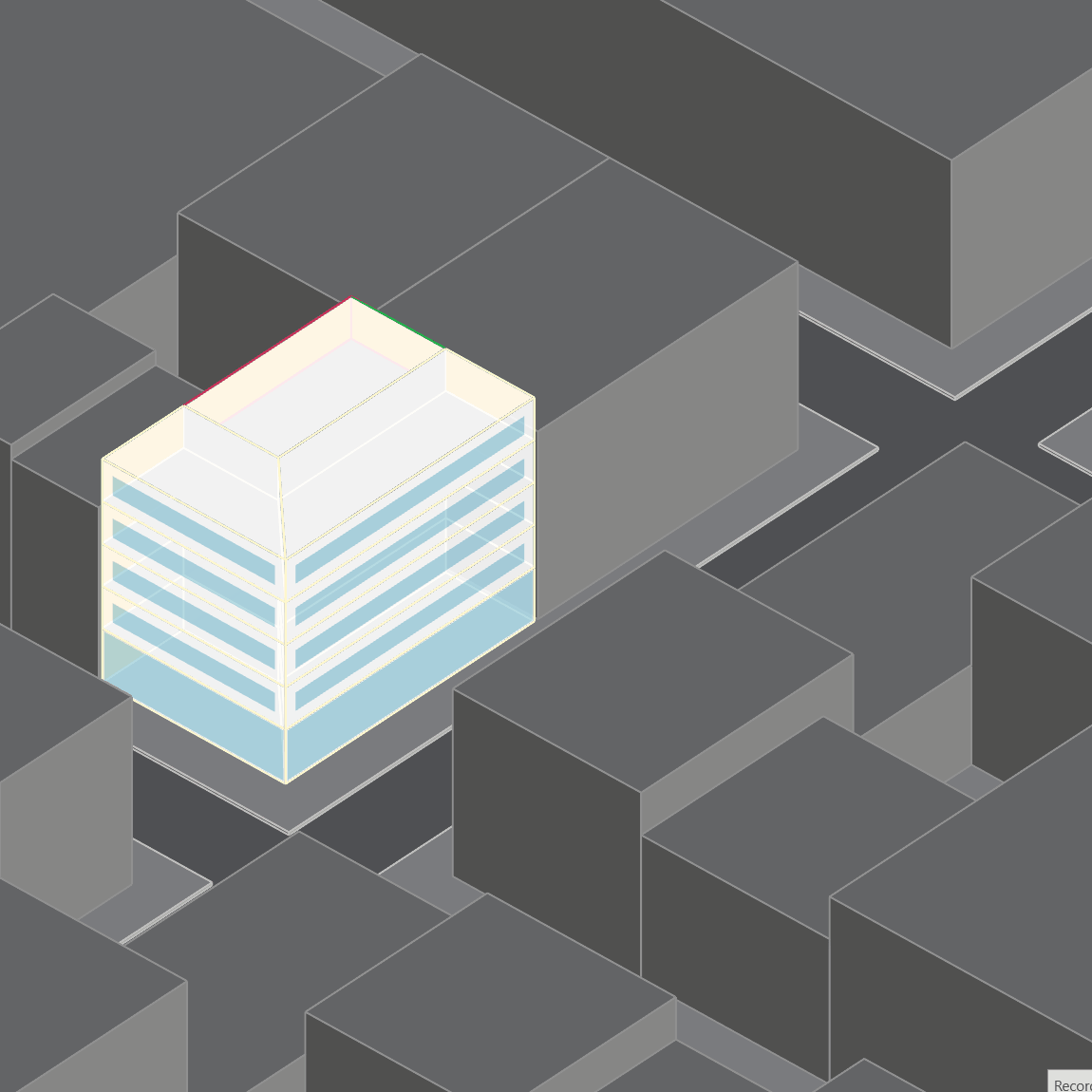 The setup of a five-story New York office building with parametric windows is visualized below in three steps.